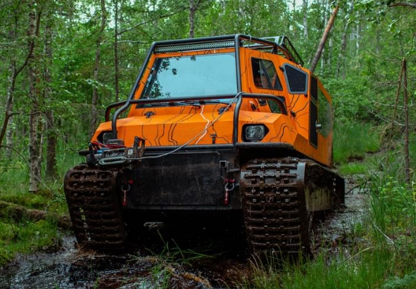 Если вы планируете проехать по обозначенным внедорожным трассам через заболоченные места, вы не столкнетесь с какими-либо серьезными проблемами, кроме грязи. Благодаря низкому давлению вашего вездехода на грунт вам не составит труда передвигаться по нему. Однако въезд прямо в болото может стать проблемой даже для такого транспортного средства. К счастью, установленные гусеницы, снизят давление вашего вездехода на грунт, позволяя ему двигаться по самым мягким поверхностям.